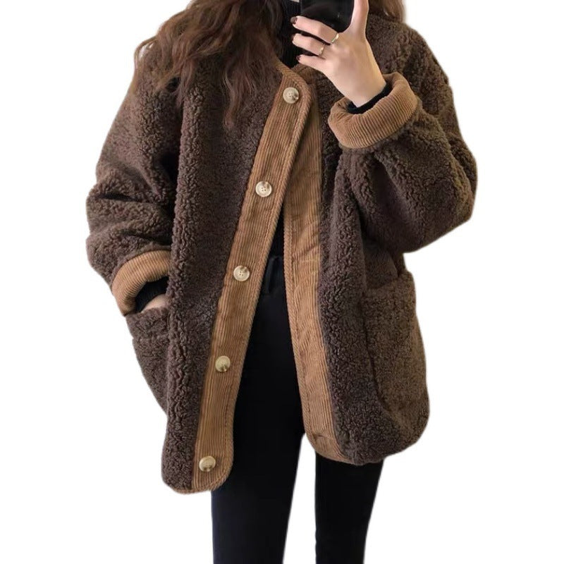 Leather Bag Edge Color Matching Thickening Thermal One-piece Cotton-padded Coat For Women
