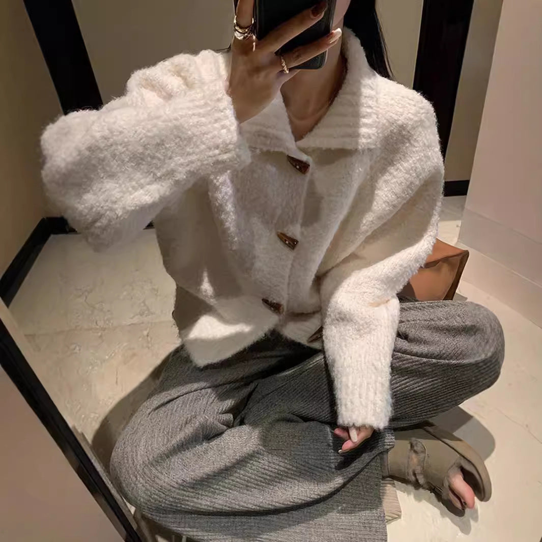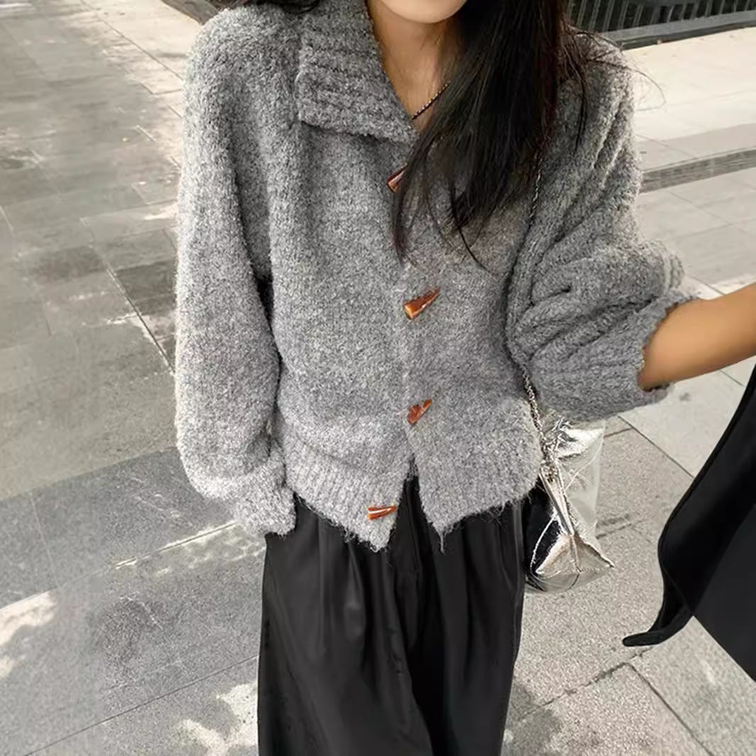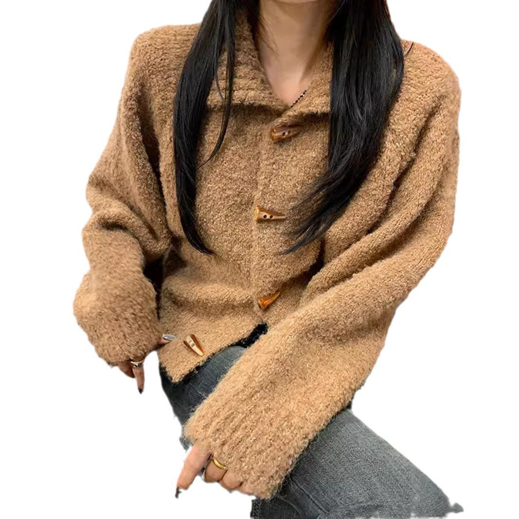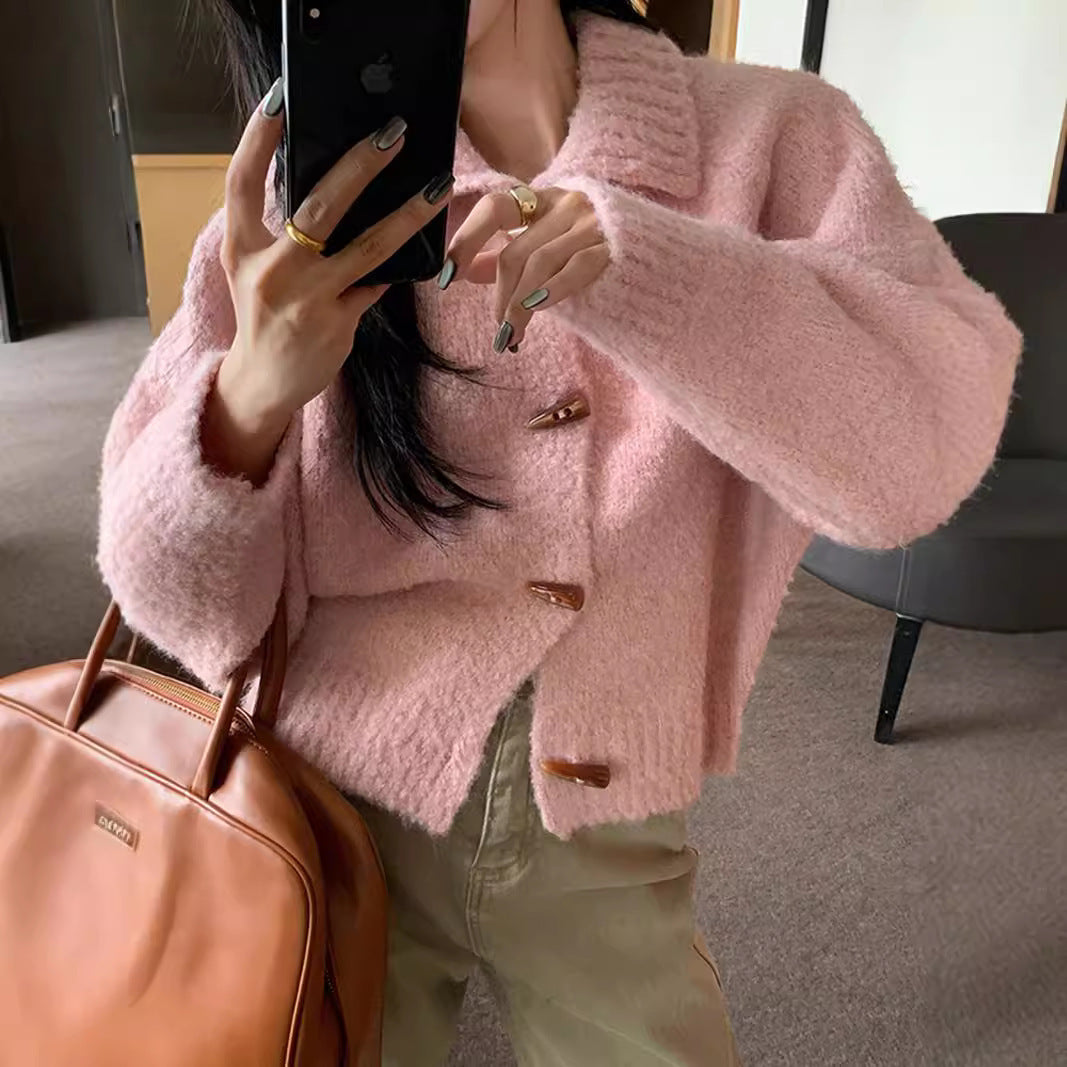 Soft And Comfortable Loose Short Thickened Horn Button Sweater