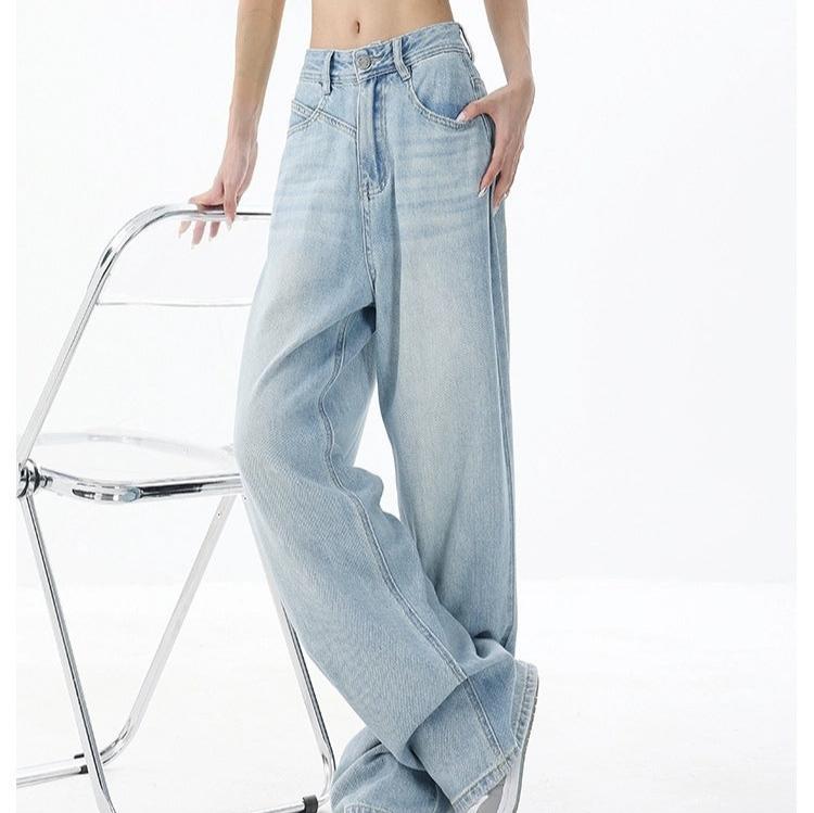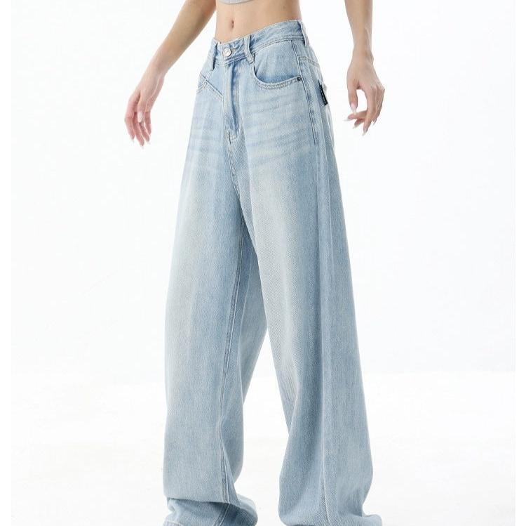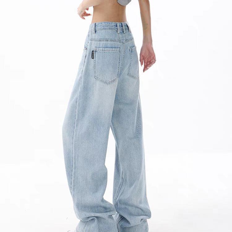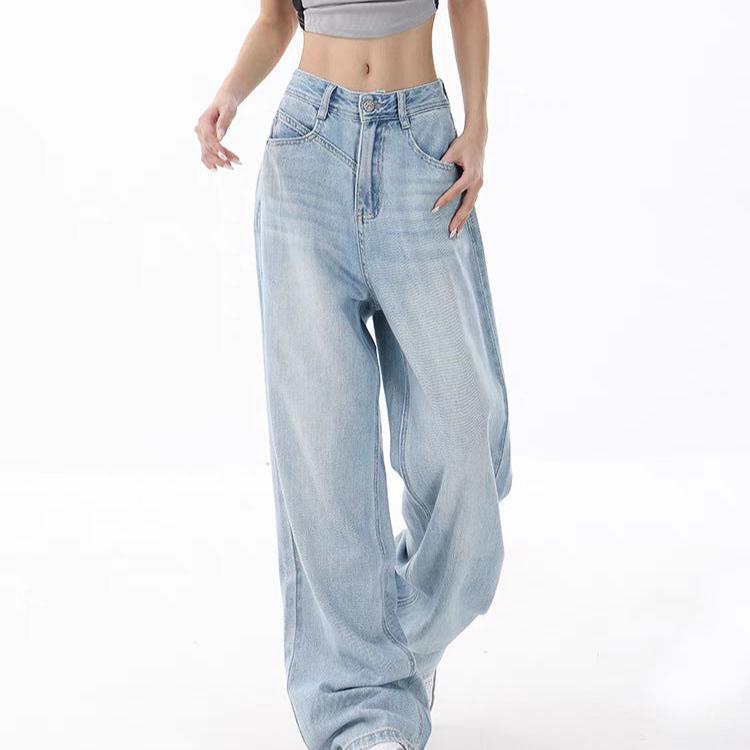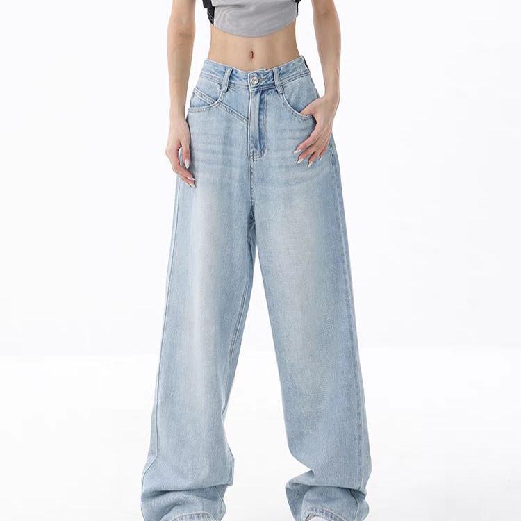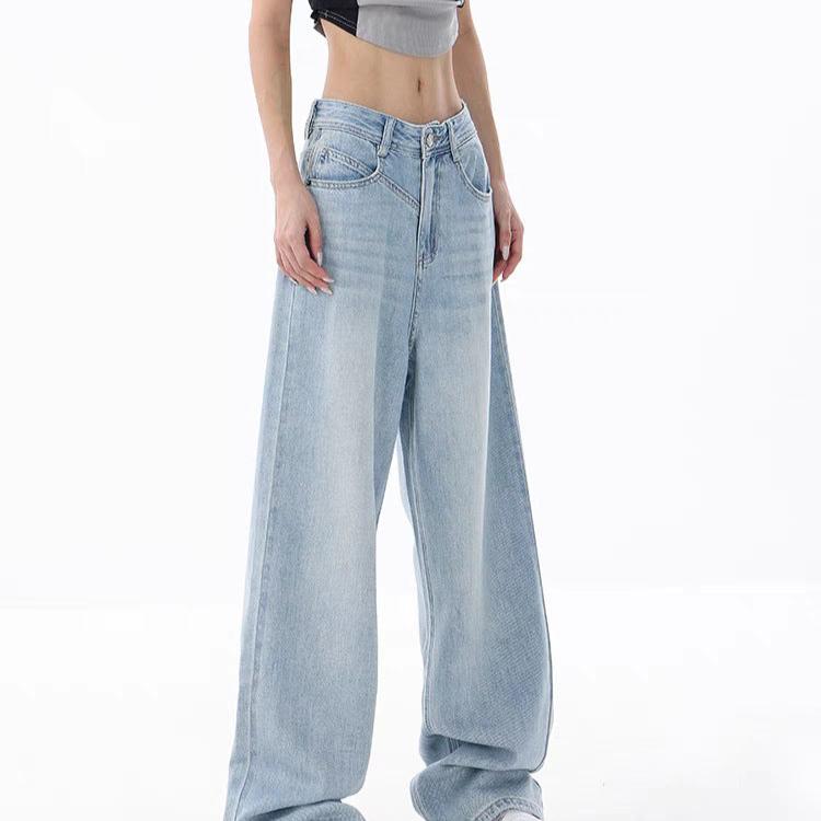 Women’s Loose Light Blue Washed Wide-leg Jeans